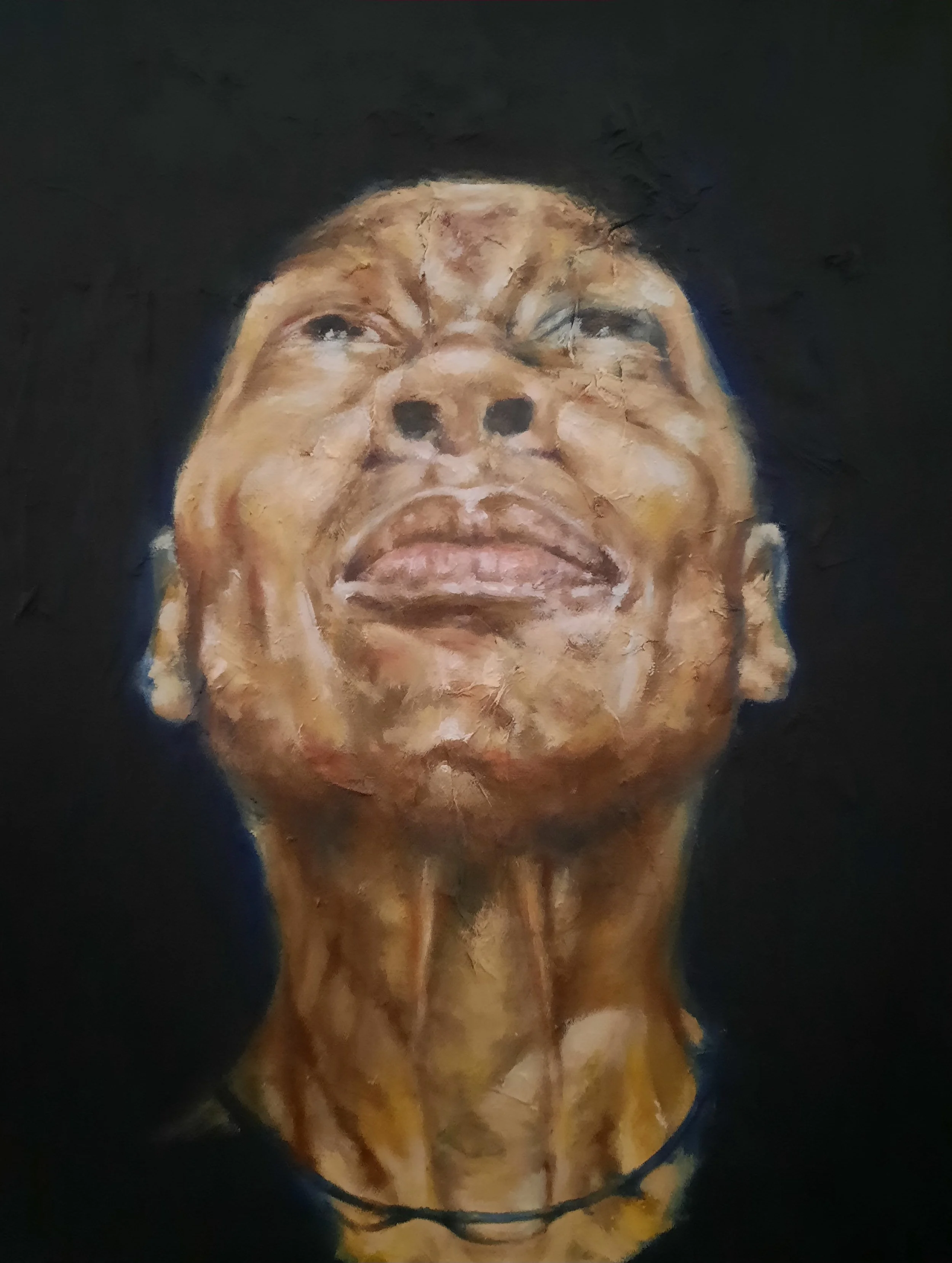 My self portraits log the myriad of my experienced emotions over the last few years. Many are painted on textured board, as I like the rough grainy effect which mirrors the emotion behind the pieces.